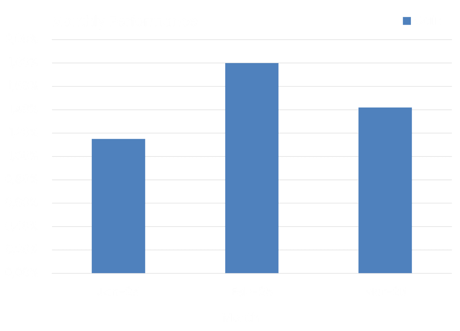 • Maximum drawdown 0.21% •10% Crypto functional holding • Beta Returns ignored